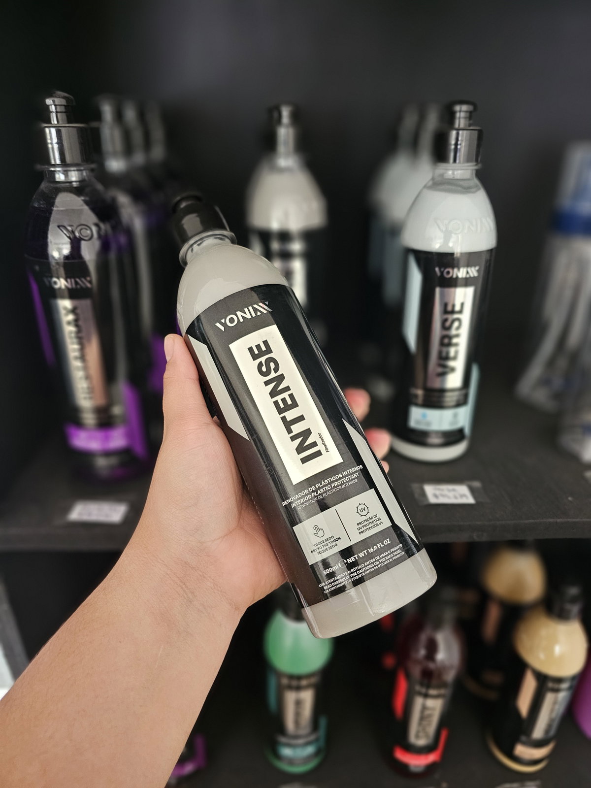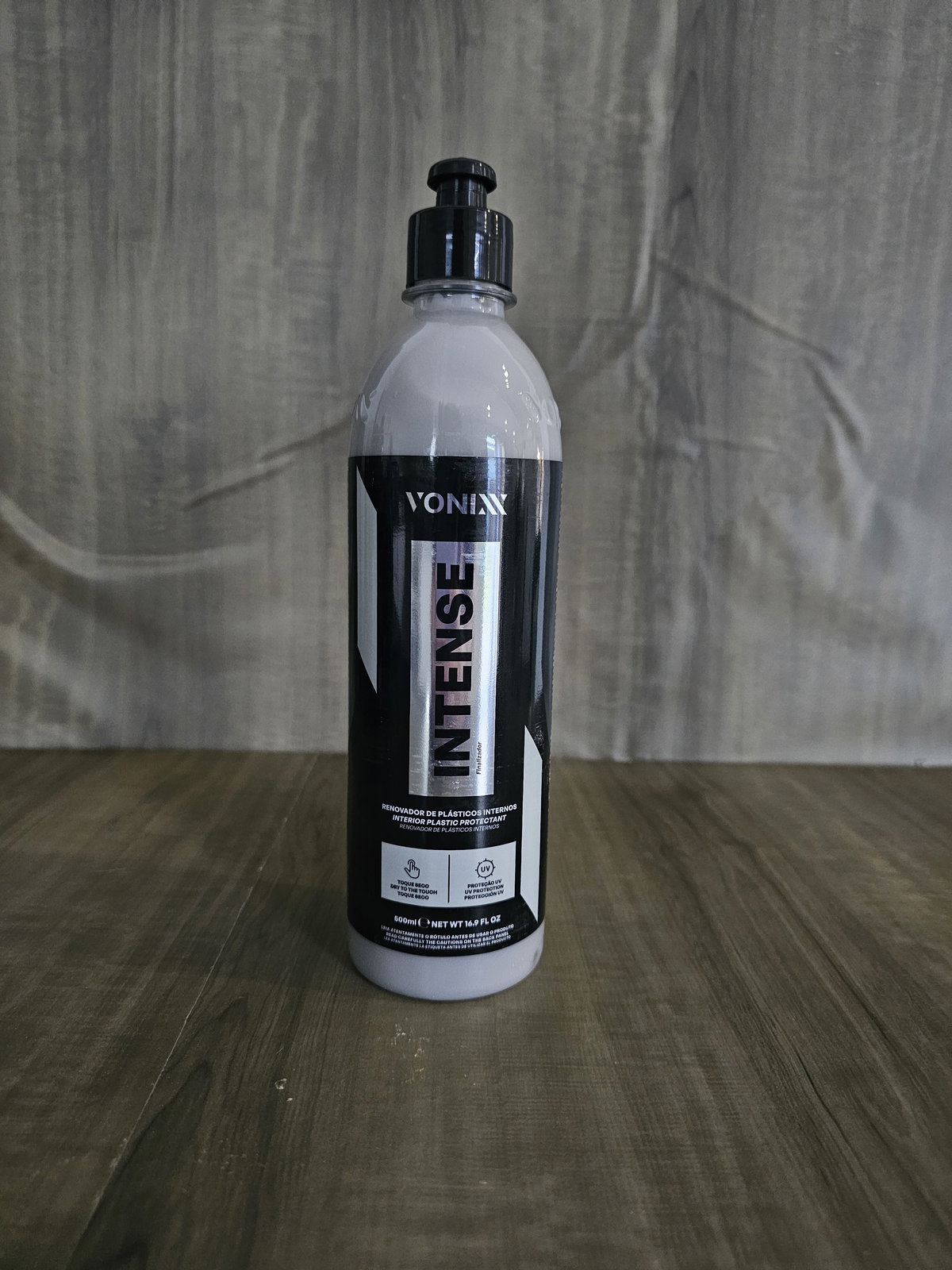 INTENSE es un renovador de plástico con protección UV, cuya fórmula equilibrada promueve un acabado natural y tacto seco, con una durabilidad de 6 meses. El producto debe usarse específicamente en el interior del vehiculo, sobre superficies como vinilos y plásticos en general. Dura hasta seis meses de protección para plásticos internos.
