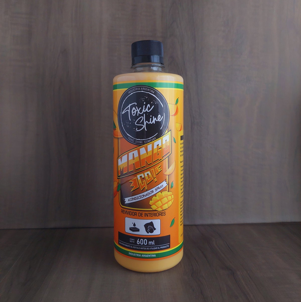 Revividor líquido de plásticos interiores con terminación satinada y aroma a mango dulce.